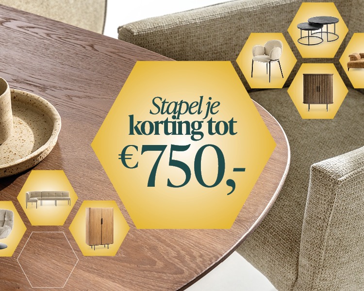 Je kunt meerdere producten combineren om tot een bepaald bedrag te komen – handig als je bijvoorbeeld een nieuwe bank, eettafel en lamp op je lijst hebt staan. De korting geldt op de actuele collectie en is geldig in onze winkels én online, tot en met 26 oktober. Reeds afgeprijsde modellen zijn uitgesloten van deelname.